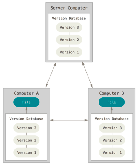 Git 과 같은 분산 버전 관리 시스템(DVCS, Distributed Version Control System)은 저장소를 전부 복제하는 방식의 시스템이다.